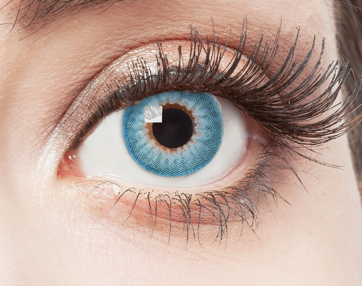 De blauwe tint varieert afhankelijk van de intensiteit van uw eigen oogkleur. Bij heldere ogen is de blauwe tint merkbaar en niet natuurlijk. Bij donkere ogen komt de blauwe tint donkerder uit.