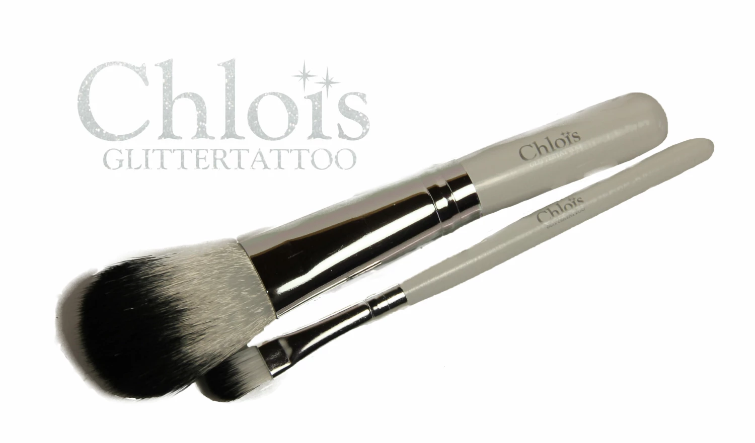 Chloïs Glittertattoo Brushset small (2 brushes) is de must have als je met glittertattoos aan de slag gaat. De set bestaat uit een fijn penseel en een grote kwast. Zonder deze set is het niet mogelijk om de glittertattoo netjes aan te brengen.