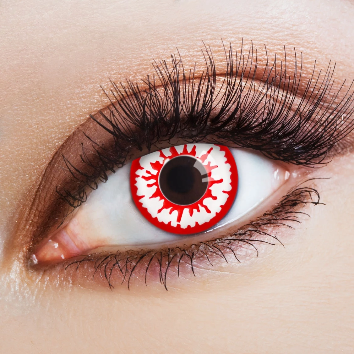 Vooral effectief zijn de ogen, waaruit de dorst naar bloed schijnt, en wiens ogen iedereen in angst en terreur plaatsen. De witte Halloween zombie-contactlenzen hebben een rode rand en zien er net zo uit als de ogen van de bloeddorstige personages die we kennen van film en televisie. Met de zombie contactlenzen u op een gekostumeerd feest staan in het midden en uw medemensen variëren in uw ogen tussen fascinatie en de wens om de veiligheid te krijgen.