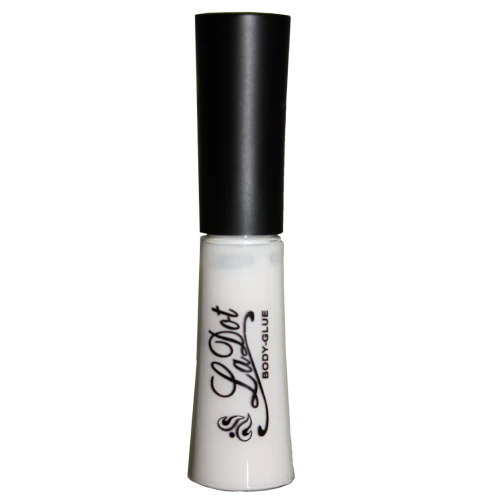 LaDot Glue is een huidlijm speciaal ontwikkeld voor het aanbrengen van glitter en andere kleine verzieringen op de huid. De lijm is waterbestendig en droogt snel, zodat de verzieringen direct blijven zitten en er zelfs mee gezwommen kan worden. Gemiddeld blijven glitters 3 tot 5 dagen zitten, steentjes laten door wrijving meestal iets eerder los. Het is ons advies de lijm niet in de buurt van ogen en mond te gebruiken.