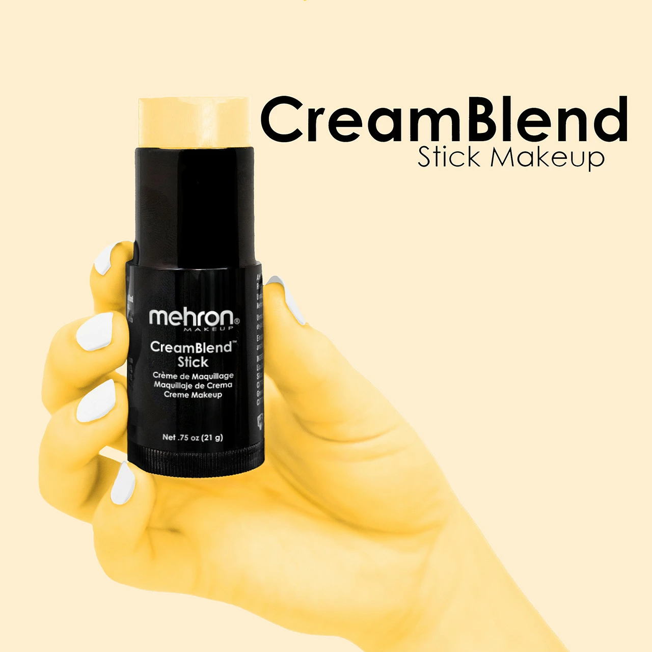 Mehron CreamBlend™ Stick Pastel Yellow is een zeer gepigmenteerde, verfijnde crèmemake-up in een handige uitdraaibare stick. De crème-formule met volledige dekking is ontwikkeld om te blijven zitten zelfs onder zware prestatieomstandigheden zoals hete podiumlichten. CreamBlend™ Stick bevat vitamines en antioxidanten en is geformuleerd zonder de petrolatum-basis die vaak wordt aangetroffen in traditionele greasepaint/vetschmink. CreamBlend biedt de ultieme dekking en prestatie. Verkrijgbaar in een verpakkingen van 21 gram.