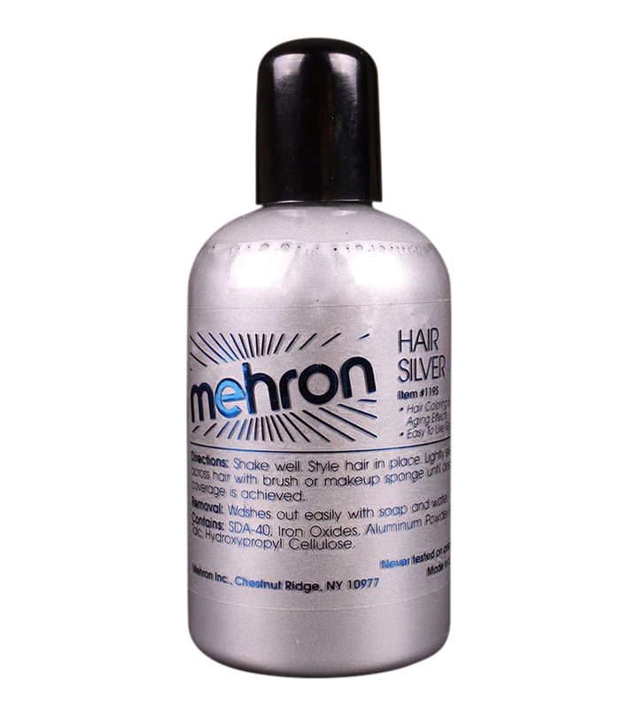 Mehron Hair Silver is een professioneel product dat gebruikt word om het haar van je model een natuurlijke oudere look te geven.