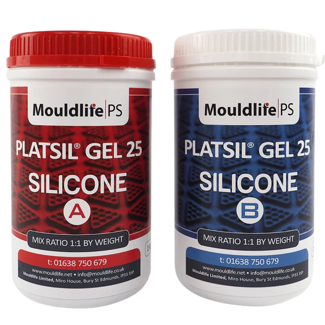 1 deel A staat tot 1 deel B (zowel in gewicht als volume) platinum-cured silicone product met een werktijd van 6 minuten en na 30 minuten kan het uit de mal. PlatSil Gel25 heeft standaard een Shore A25 hardheid, hier bedoelen we een redelijke stevigheid mee. Wil je de silicone prothese zachter hebben dan moet je niet vergeten om Deadener toe te voegen. Zo maak je de silicone zachter en nog natuurlijker als je het aanraakt of als het op bewegende delen van het lichaam wordt aangebracht.