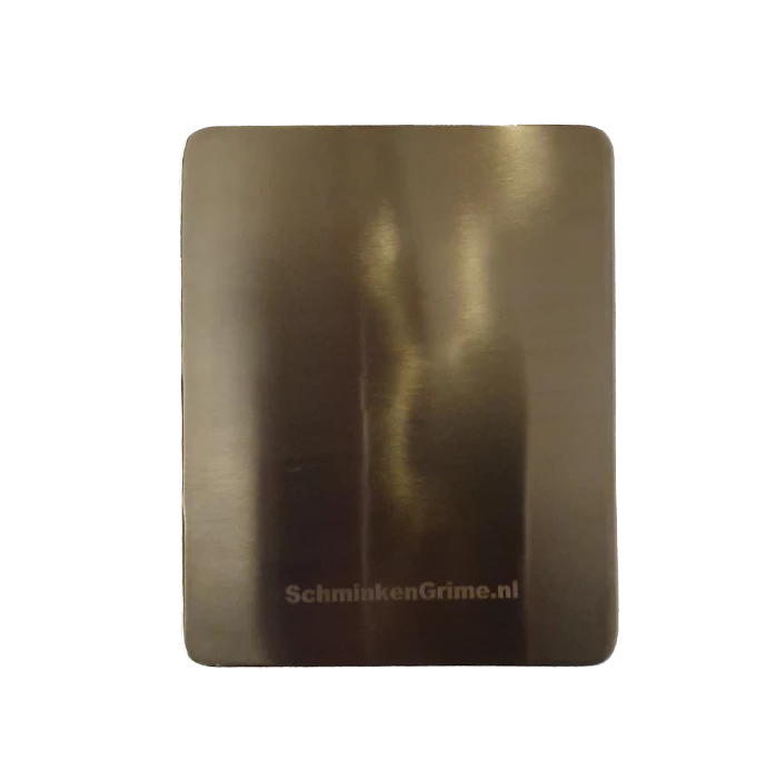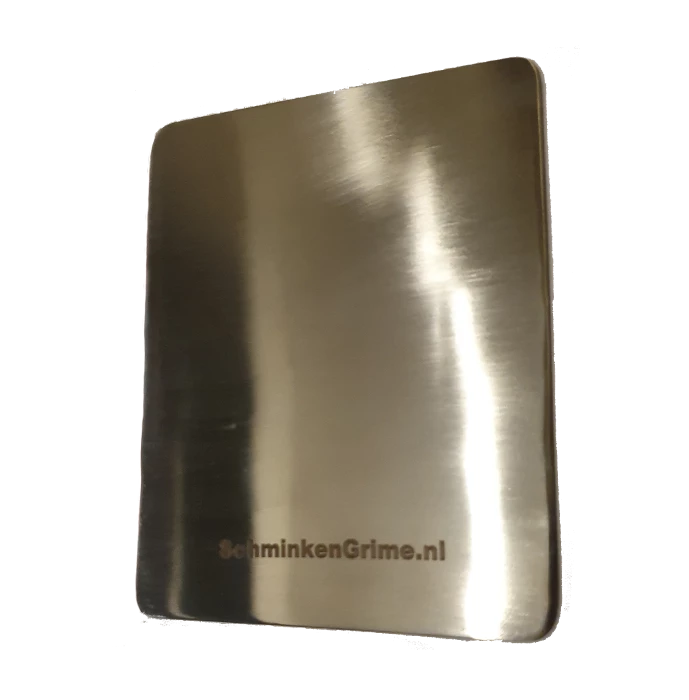Het mixing palette van SchminkenGrime, deze is van roestvrijstaal en we kunnen wel zeggen we zijn er trots op. Het chirurgische staal is zeer solide en kan dan ook in de vaatwasser. Het is niet een dun plaatje die je maakelijk doorbuigt, maar een solide plaat waar je je sculptgel, latex en schmink op kunt mengen. Een multifuv=ctionele tool voor in je kit. Het gebruiken van een mengpalette voor het mengen van je schmink of het aanbrengen op de huid vanaf een meng palette in plaats van direct uit de verpakking zorgt voor een hygiĂŤnische manier van werken.Â