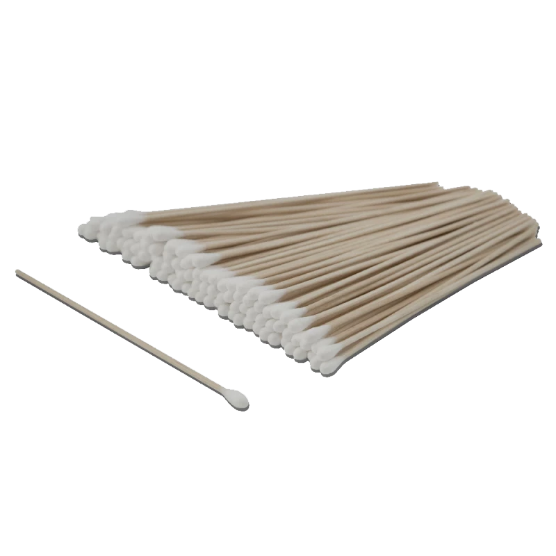 Deze wattenstaafjes hebben een houtensteeltje en geen plastic steeltje. De steel is 15 cm lang.