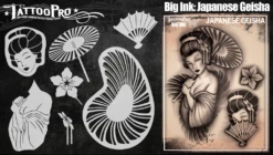 Tip: Doe eens gek en gebruik kleur in je zwart-grijs tattoo. Kijk voor de meest geweldige waterbestendige Airbrush inkt eens bij ons assortiment ProAiir.