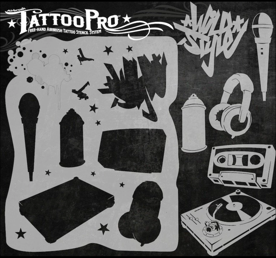 Wiser’s Airbrush TattooPro™ Stencil – Hip Hop zijn Airbrush sjablonen speciaal ontworpen door Bodypaint en Graffiti artist Wiser Oner.