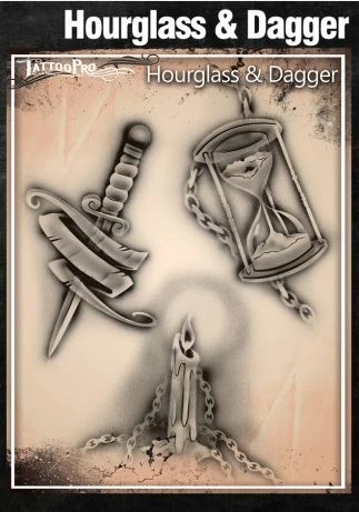 Wiser’s Airbrush Tattoo Proβ’ Stencil βΒ Hourglass & DaggerΒ zijn AirbrushΒ sjablonen speciaal ontworpen door Bodypaint en Graffiti artist Wiser Oner.Β