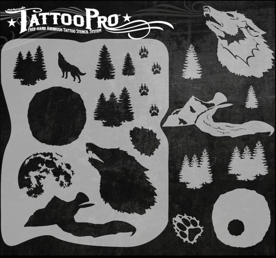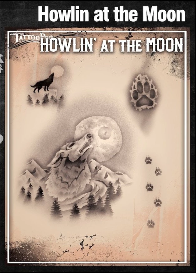 Wiser’s Airbrush Tattoo Pro™ Stencil – Howlin at the Moon zijn Airbrush sjablonen speciaal ontworpen door Bodypaint en Graffiti artist Wiser Oner.