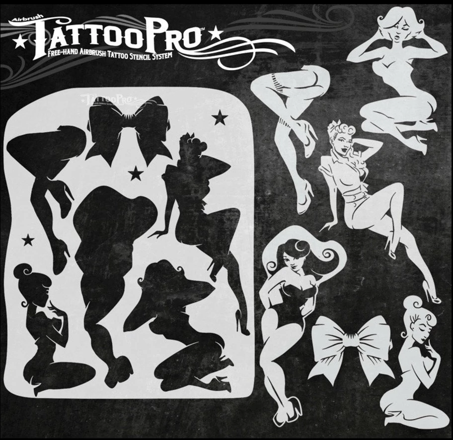 Wiser’s Airbrush TattooPro Stencil – Pinup Girls zijn Airbrush sjablonen speciaal ontworpen door Bodypaint en Graffiti artist Wiser Oner.