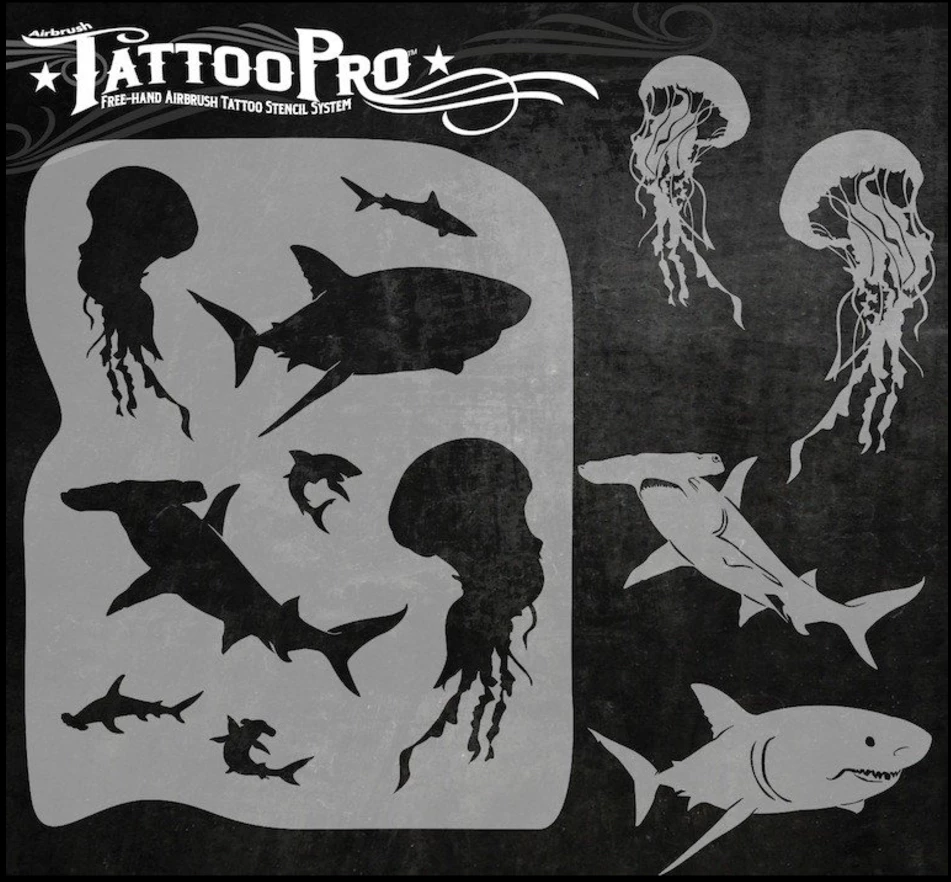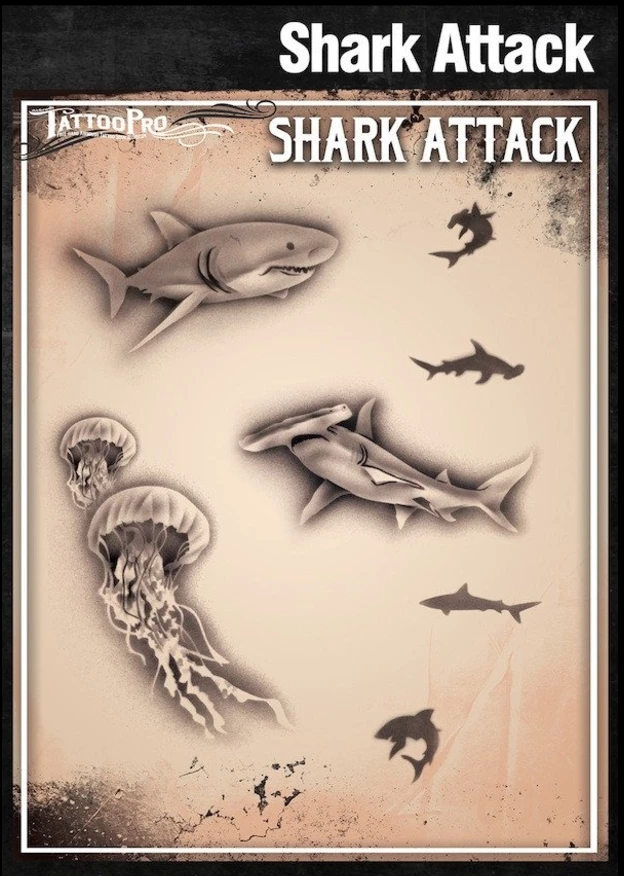 Wiser’s Airbrush TattooPro Stencil – Shark Attack zijn Airbrush sjablonen speciaal ontworpen door Bodypaint en Graffiti artist Wiser Oner.